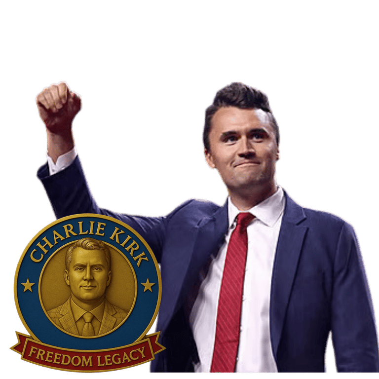 A collectible tribute designed to honor Charlie Kirk’s legacy, featuring a refined gold finish and crafted as a timeless piece to proudly own and display.